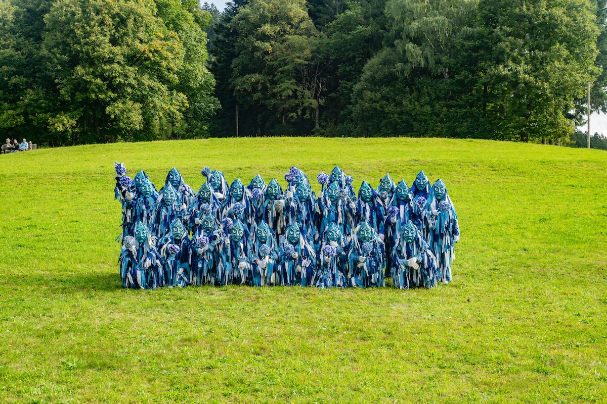Es wurde ein blaues Häs erstellt, das mit überdurchschnittlich langen Spättle so versehen ist,  als würde sich gerade ein Quellegeist aus dem Wasser erheben. Diese blauen und weißen Spättle sind handgeschnitten und an den Enden ausgefranzt. Silberne große und kleine Schellen sind auf dem ganzen Häs verteilt. Die blaue Holzmaske ist in Tropfenform gehalten damit der Wassercharakter des ganzen Häs besser zum Ausdruck kommt. Ein aus weißer und blauer Wolle hergestellter Wedel komplettiert das Häs.